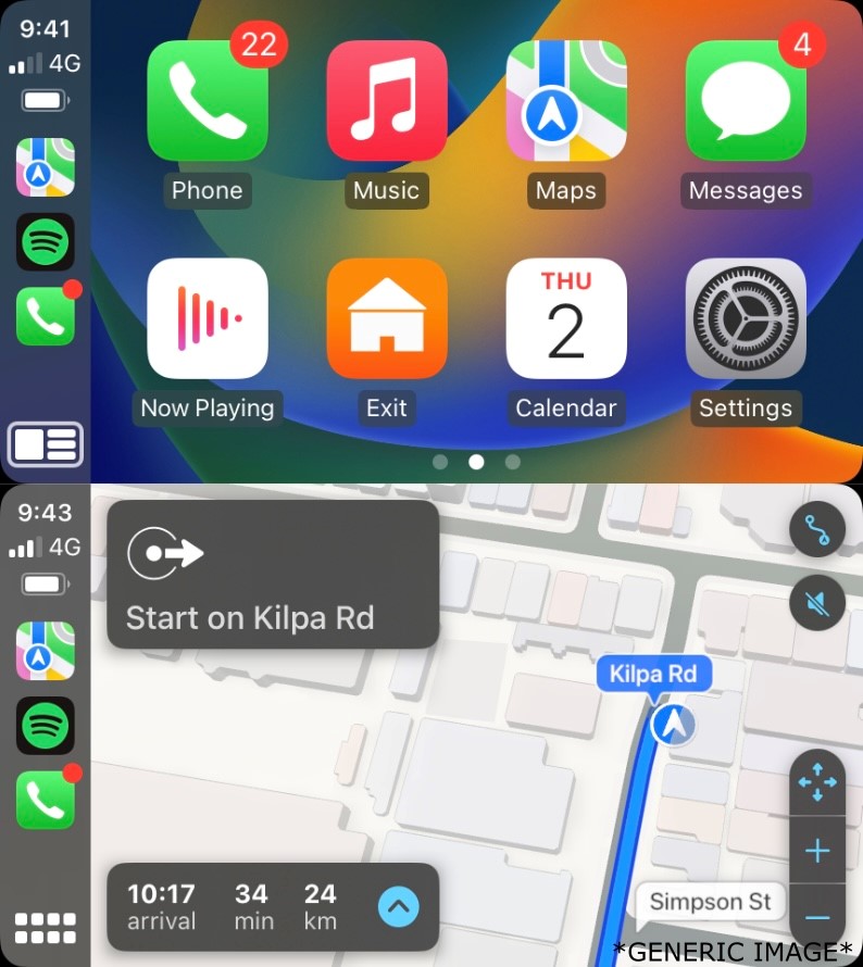 - GPS navigation via Apple Maps, Google Maps, Waze etc