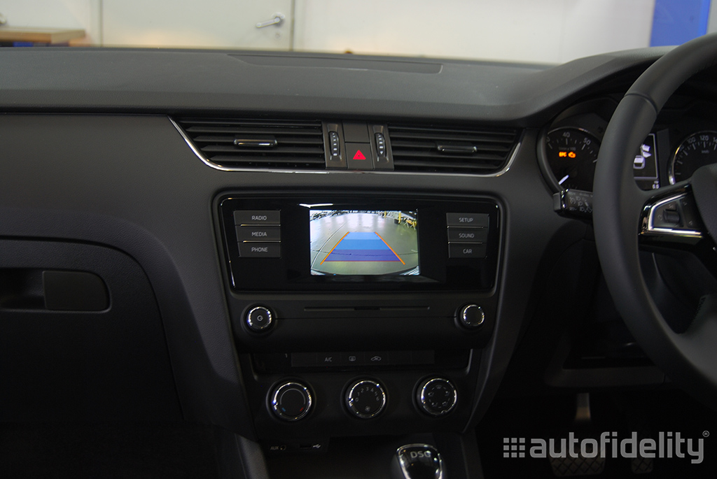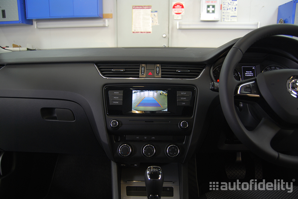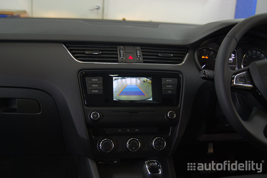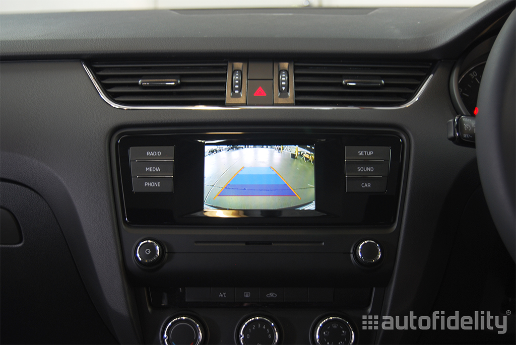 Integrated rear view camera. Camera view is automatically displayed on centre display screen when reverse is activated. Features include: High quality CCD image sensor, 0.01 lux minimum illumination, 170 degree viewing angle and full colour camera with dynamic guidelines.