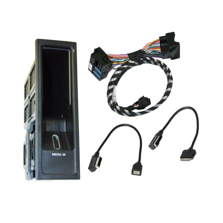 Retrofit kit in order to connect an external audio source such as iPod, iPhone, mp3 players as well as USB storage devices to Skoda Columbus and Bolero systems for music playback. Songs and song lists can be selected directly from the vehicles head unit controls. Functions are as factory specifications, and units are supplied with an iPod dock connector cable (not suitable for iPhone 5 or other devices using a lightning connector).